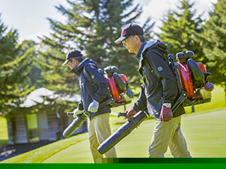 落ち葉掃き、コース内の清掃、散水、樹木の剪定、機械のメンテナンスなど、コース全体の管理を行います。